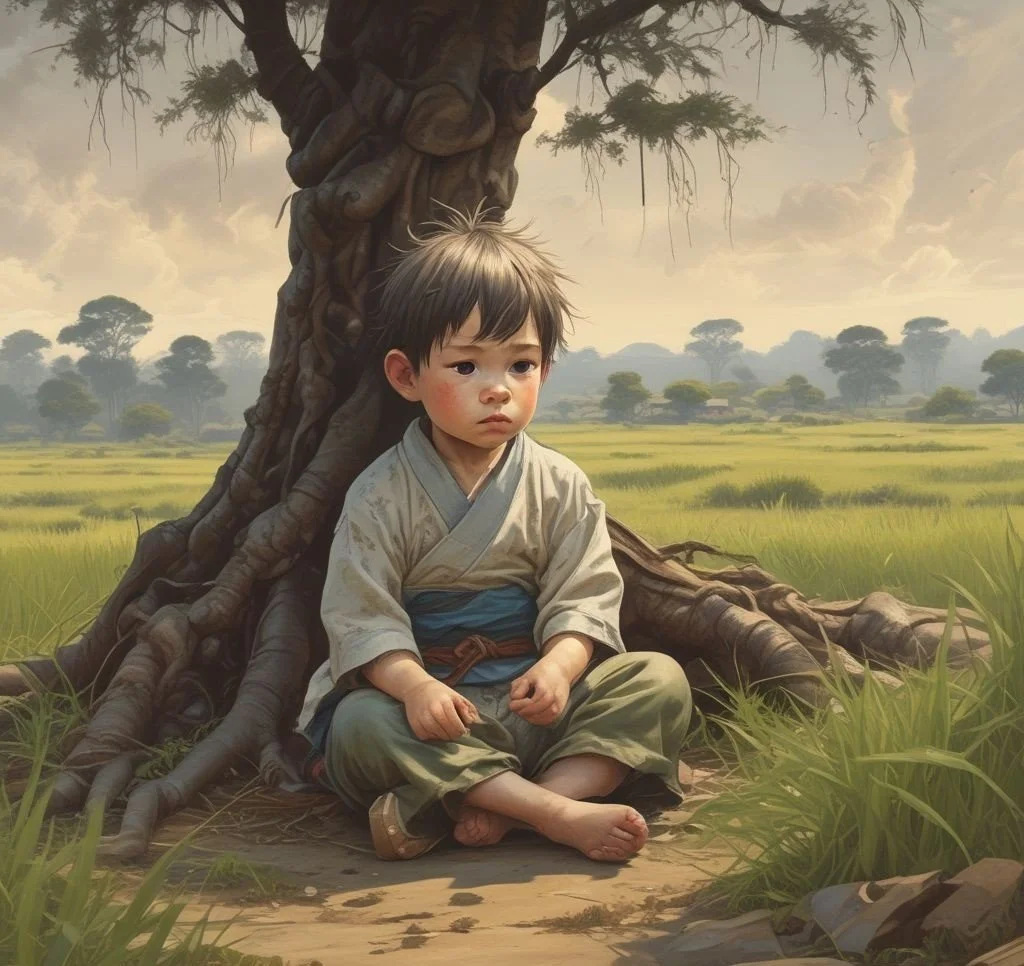 Kuri was not a typical child. His mother was cruel to him, often neglecting him and sometimes hitting him when she grew frustrated. Kuri’s only solace came from the brief moments of peace he found by the old tree near the rice field. He had no friends, and the village children stayed away, whispering about the sadness that surrounded him.